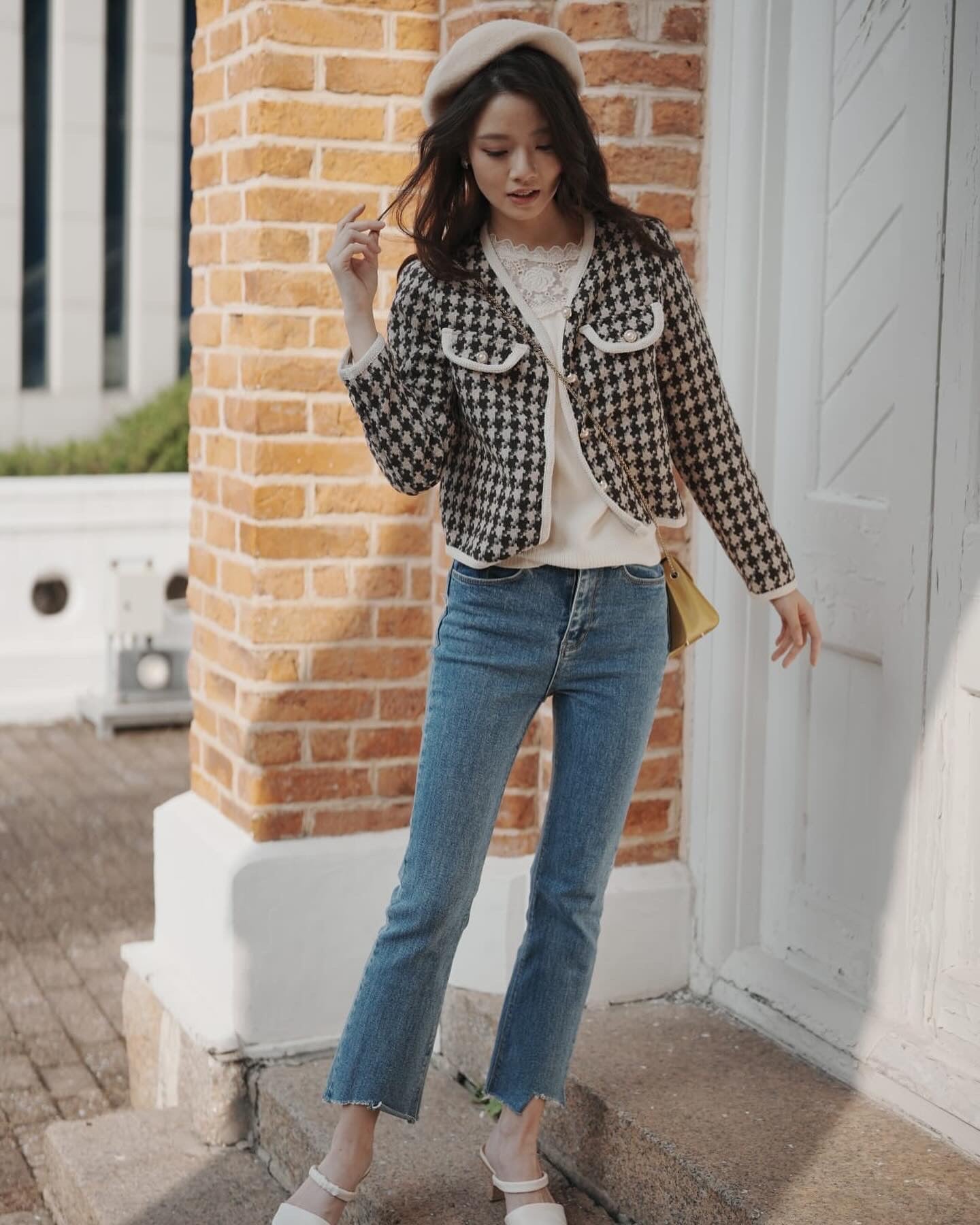 韓系千鳥格小香風外套
