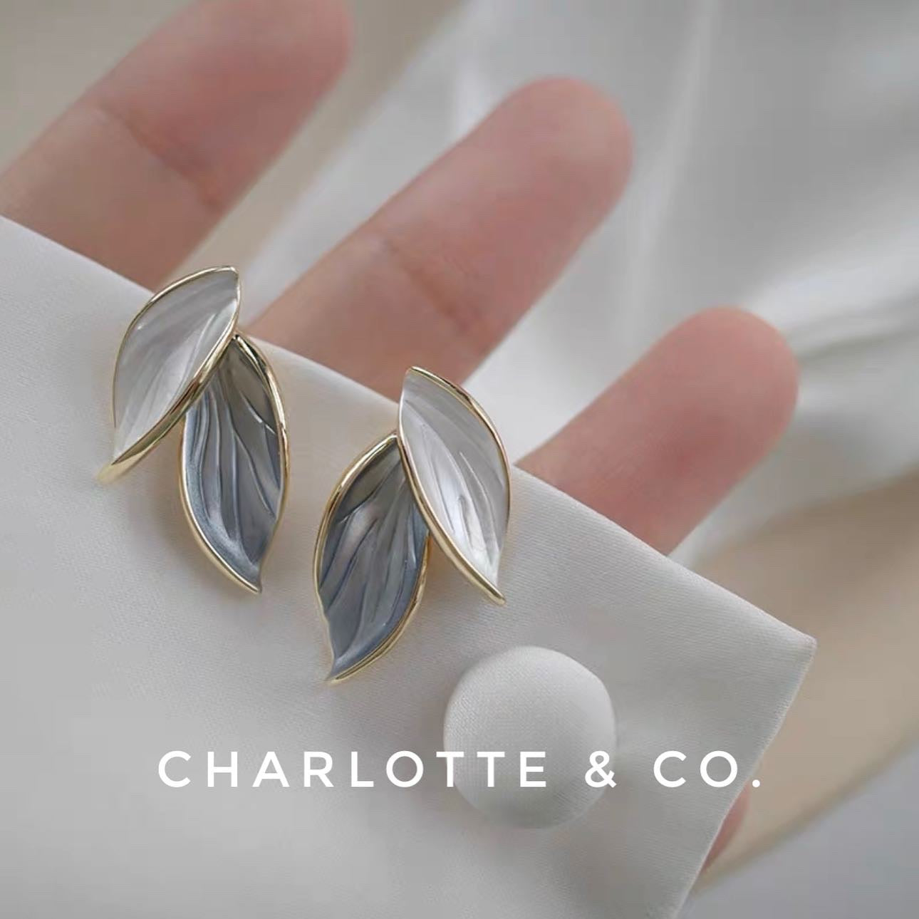 韓系藍葉子耳環