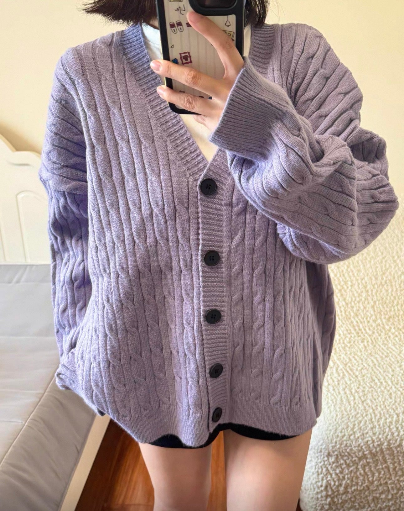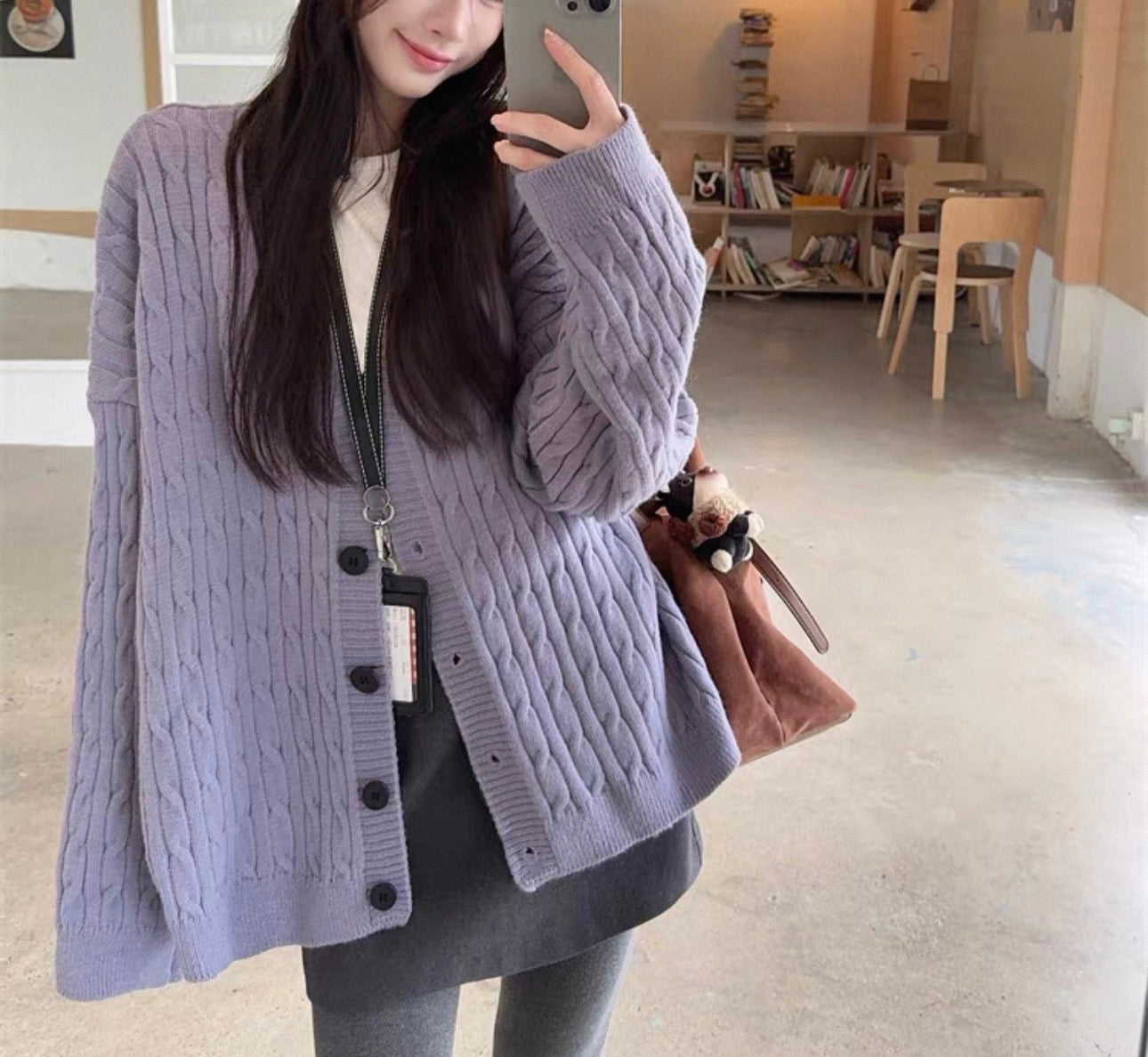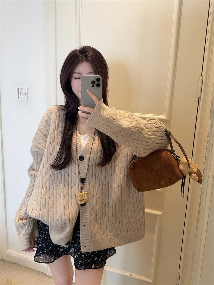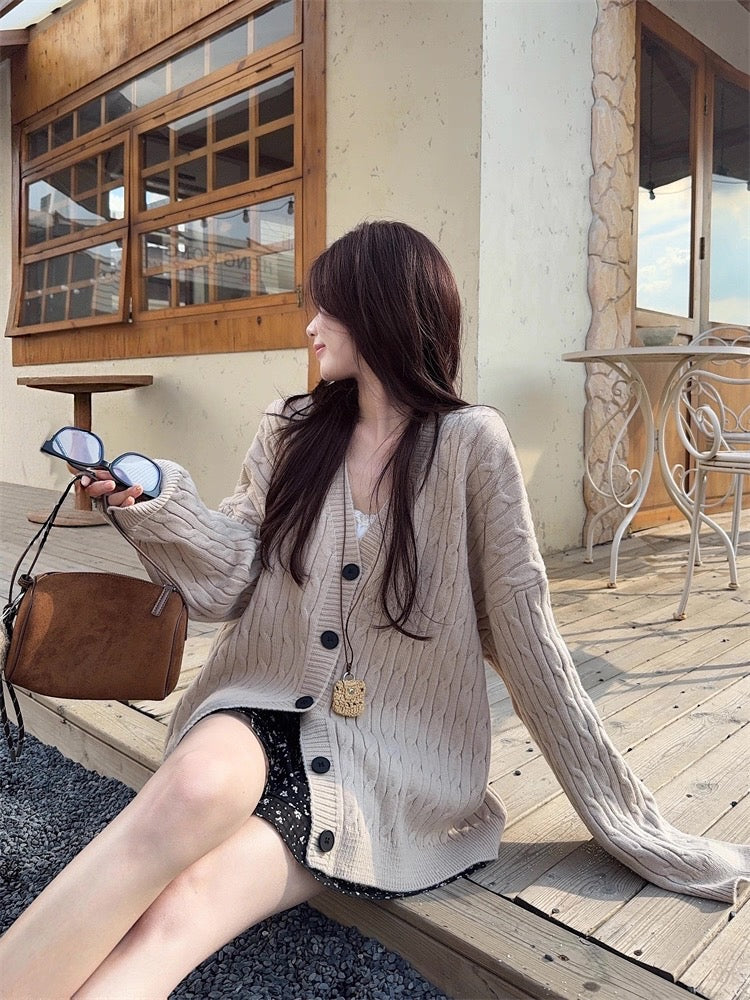 韓系V 領麻花針織長外套